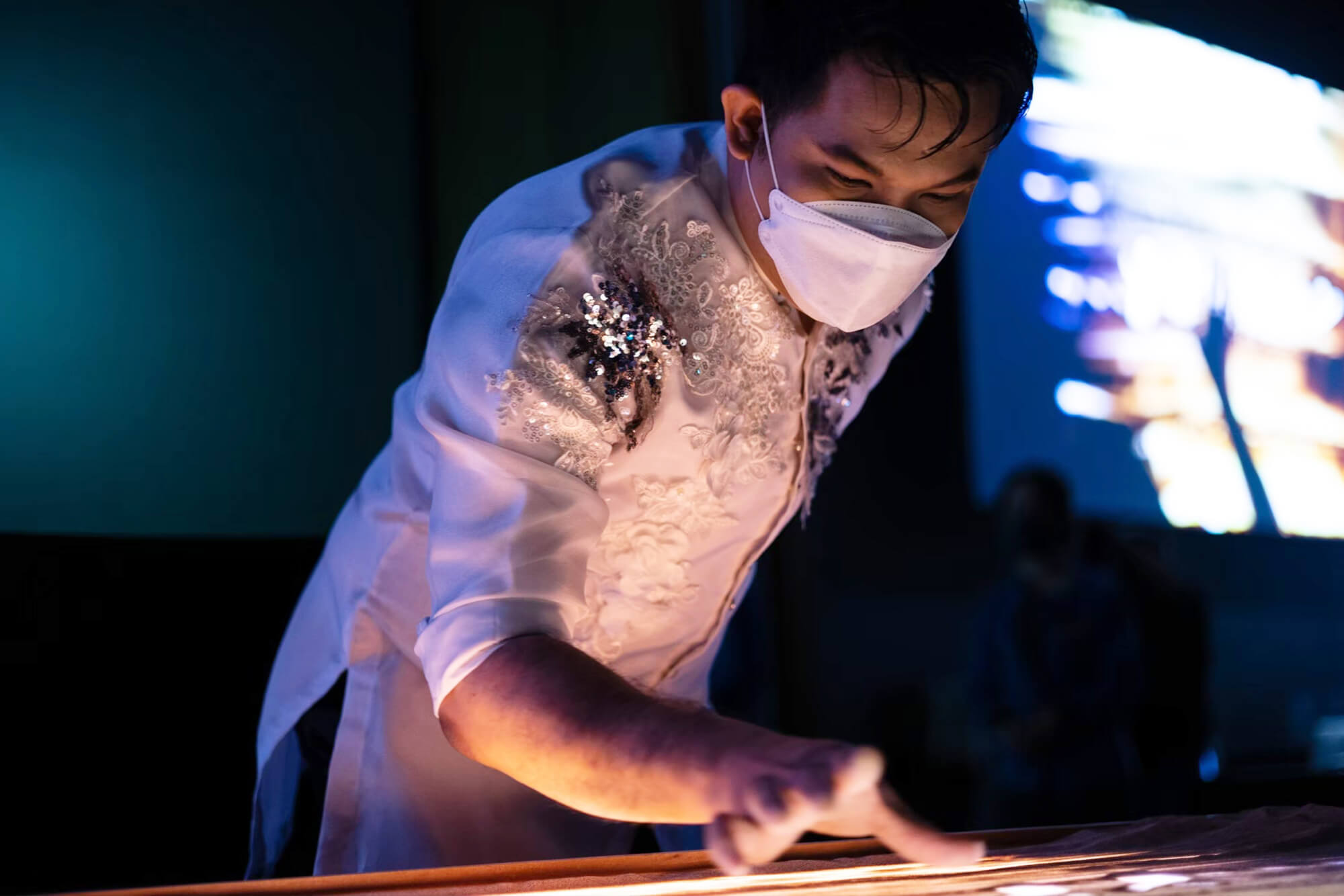 為了確保演出的效果,我們特地聯繫了一位經驗豐富的沙畫藝術家,並與他進行了多次的溝通和協調。我們讓他了解了客戶的要求和期望,並告訴他整個宴會的主題和背景,希望他能夠為這個場合量身打造一個獨一無二的演出。他非常認真地對待這次演出,不斷地研究和創作,為整個宴會注入了更多的活力和熱情。