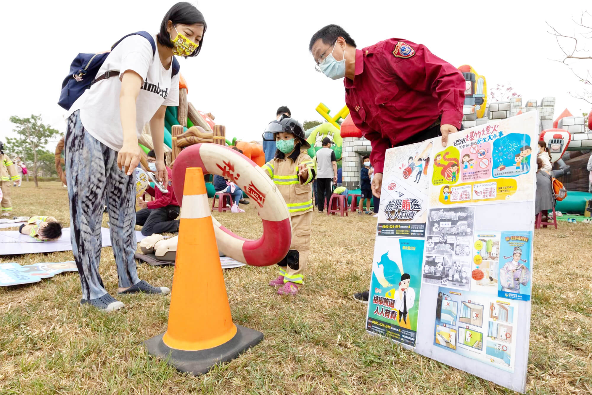 這次活動不僅提供了玩樂的機會,還特別邀請了高雄市消防局來設置了一個闖關遊戲攤位。透過遊戲,孩子們能夠了解災害防治和應變的重要性,並在玩樂中學習相關知識。消防局的工作人員用生動有趣的方式向孩子們介紹如何應對火災和地震等緊急狀況,讓他們在遊戲中獲得了有關安全的寶貴知識。這樣的寓教於樂的活動形式受到了孩子們和家長們的熱烈歡迎。