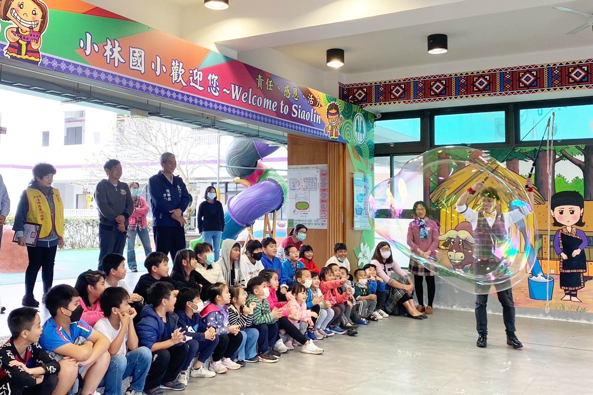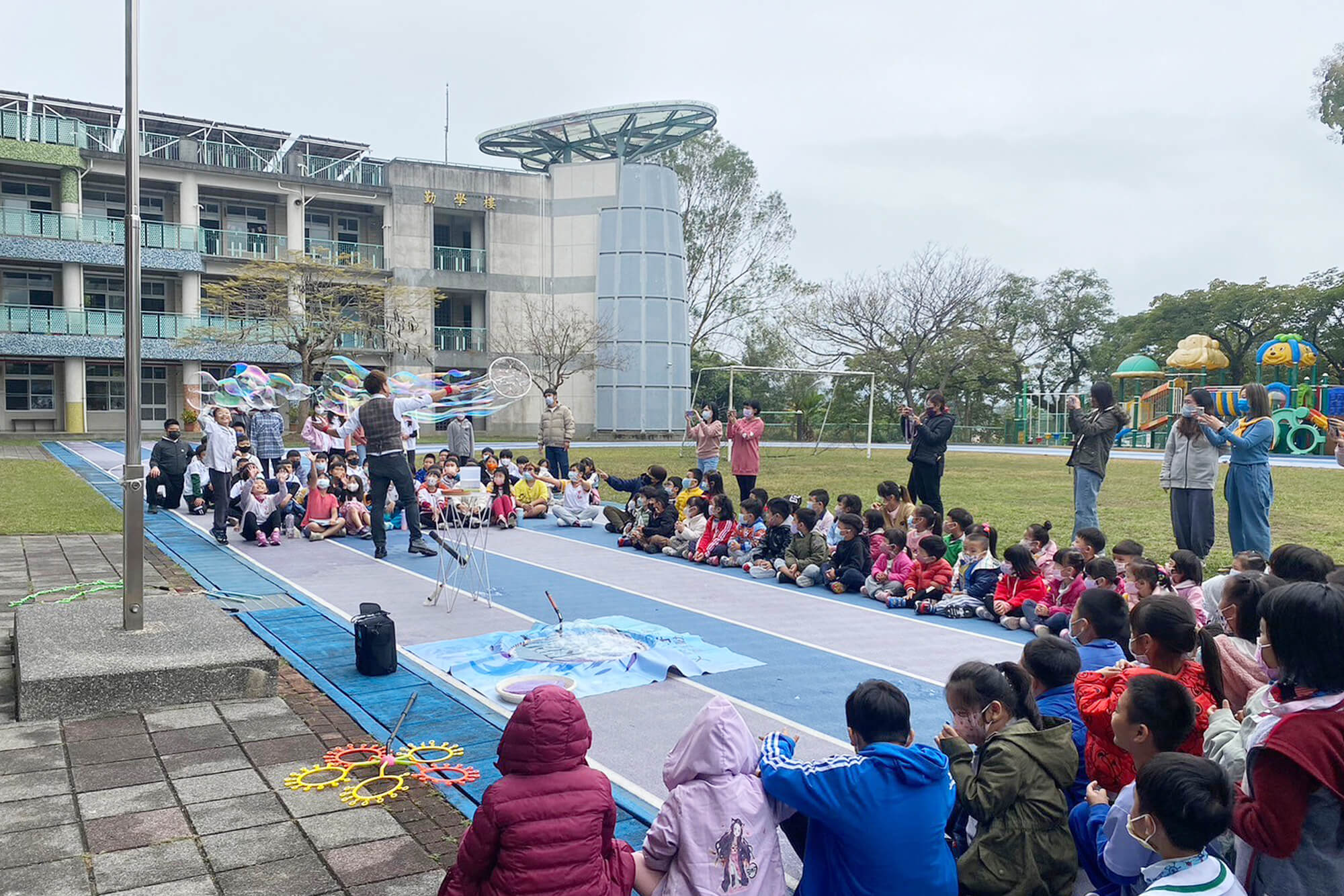 即便是身處山區,雖然不會迎來冰雪,但艾佛特帶來的泡泡演出彷彿為這些小天使打開了一扇奇幻的冰雪之門。