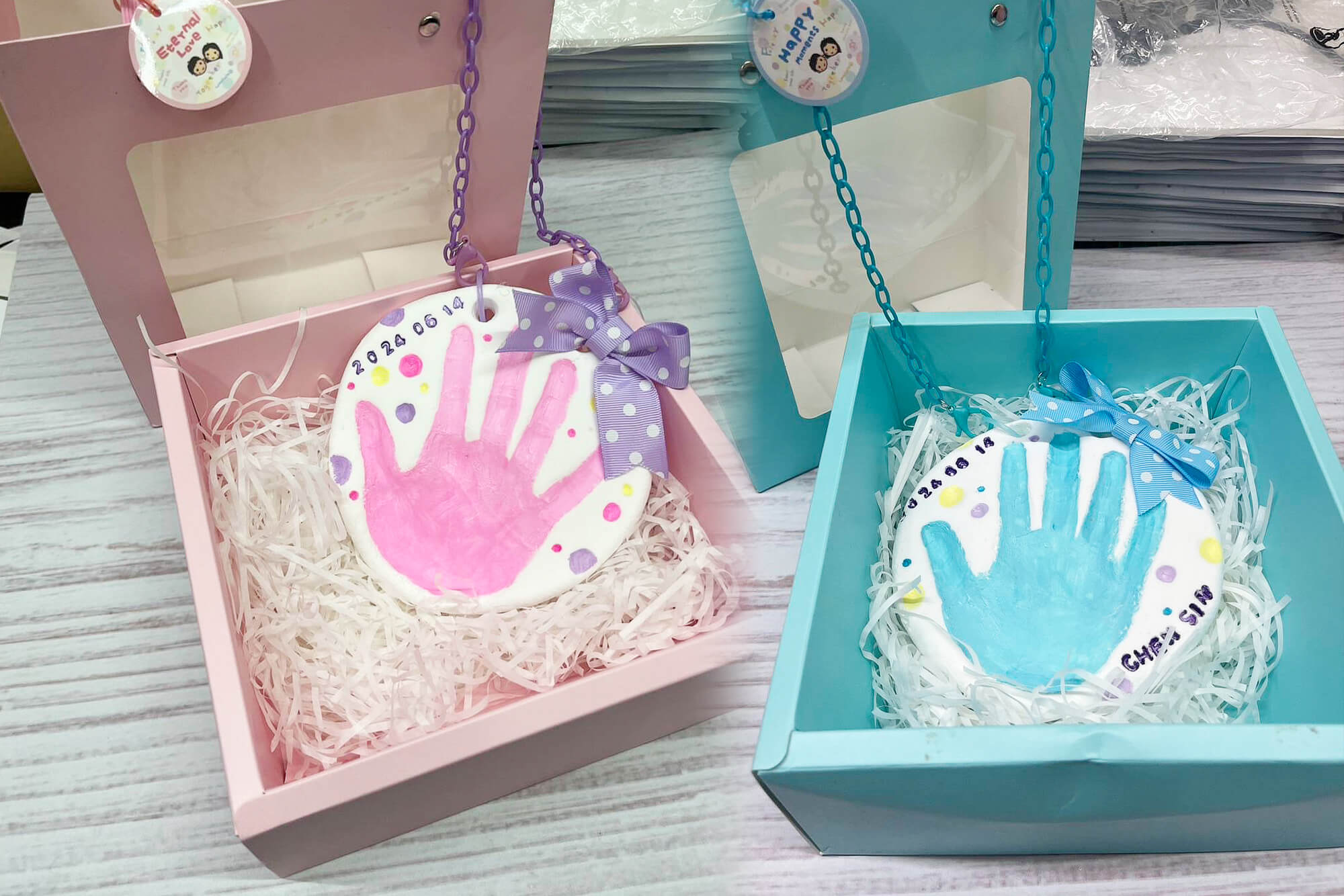 然而,挑戰遠不止於此。每份手模拓印只有一個原件,因此後製過程更需要無比的細心與謹慎。手作老師們需要對手模進行細緻修整,然後將其鑄造成精美的吊飾,再搭配簡約的項鍊設計,完整呈現孩子們的手模造型。為了讓每份禮物更具個人化,我們還在吊飾上刻上了孩子的名字與畢業年份,讓這份禮物成為專屬於每位孩子的珍藏品。