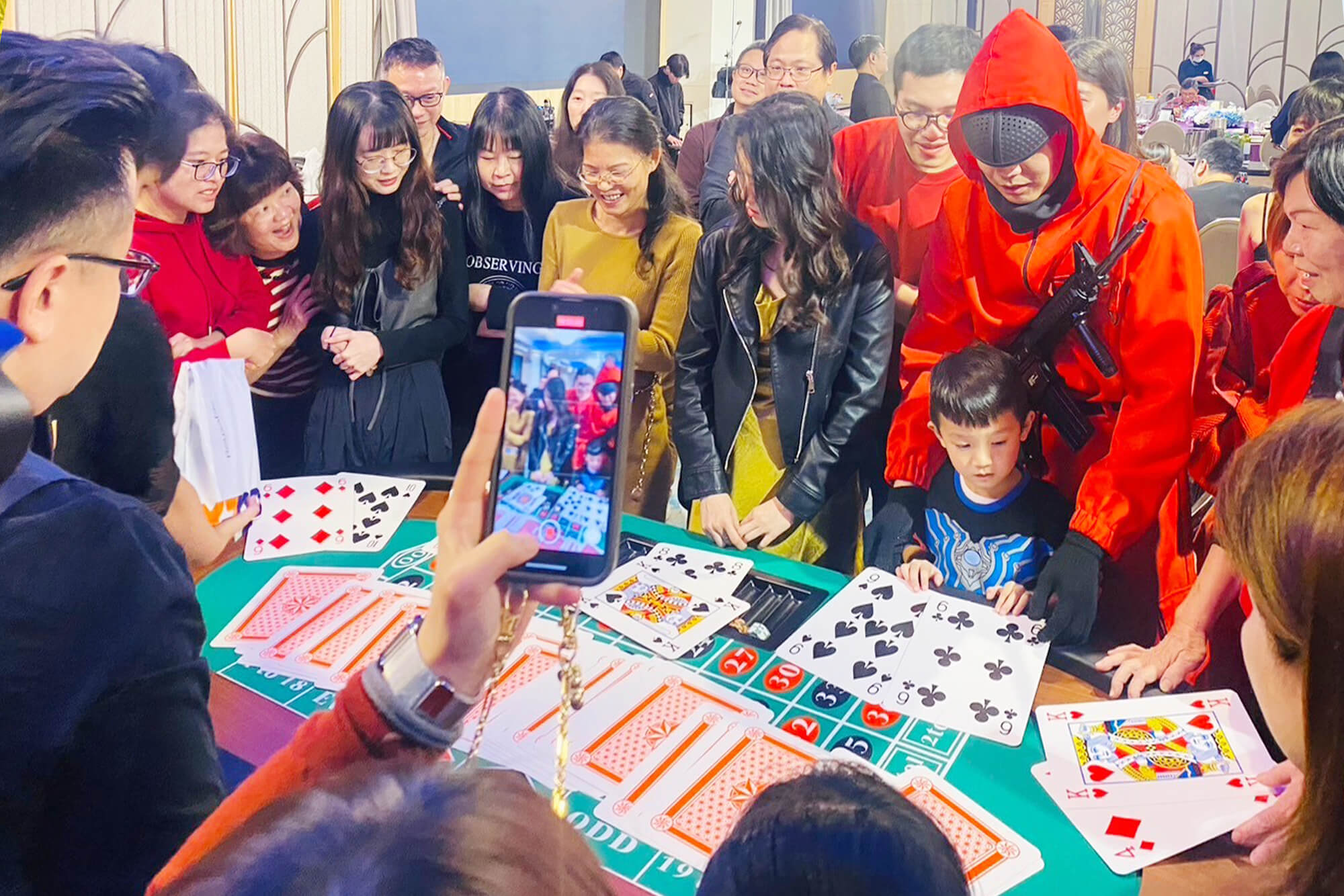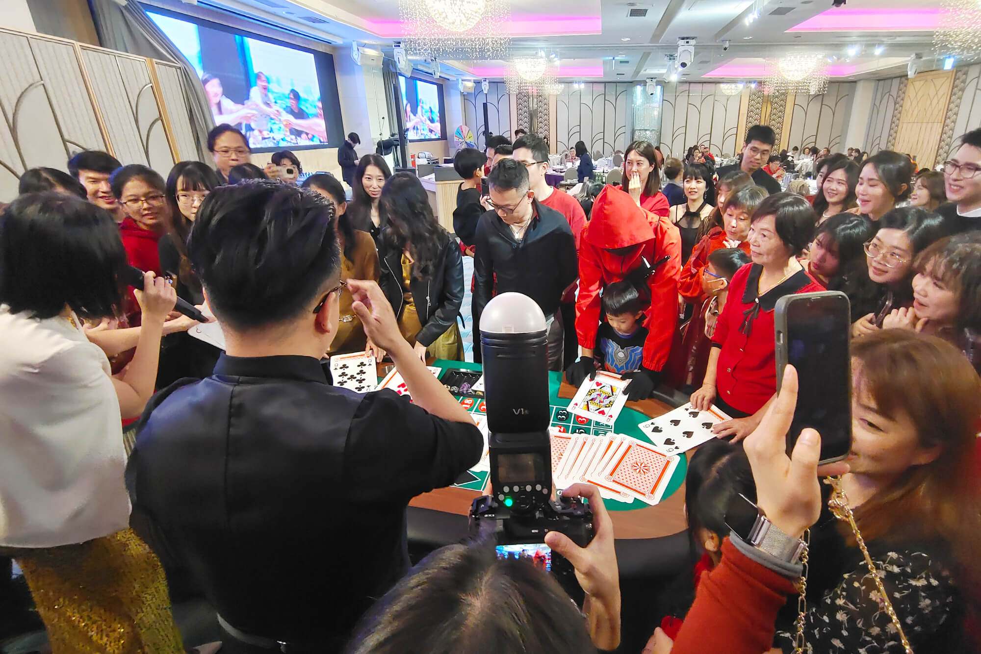這些安排使得現場氣氛熱烈,賓客們彷彿置身於拉斯維加斯的賭場,盡情享受遊戲的樂趣。