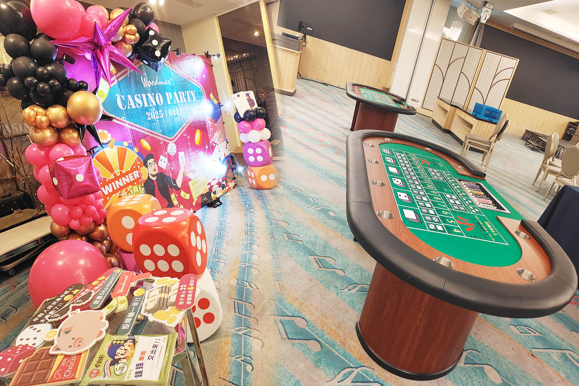 近期,我們承辦了Woodmax公司的尾牙活動,負責整體場地佈置與設計。為了滿足客戶對Casino主題的需求,我們精心策劃,將場地打造成充滿拉斯維加斯氛圍的娛樂空間。