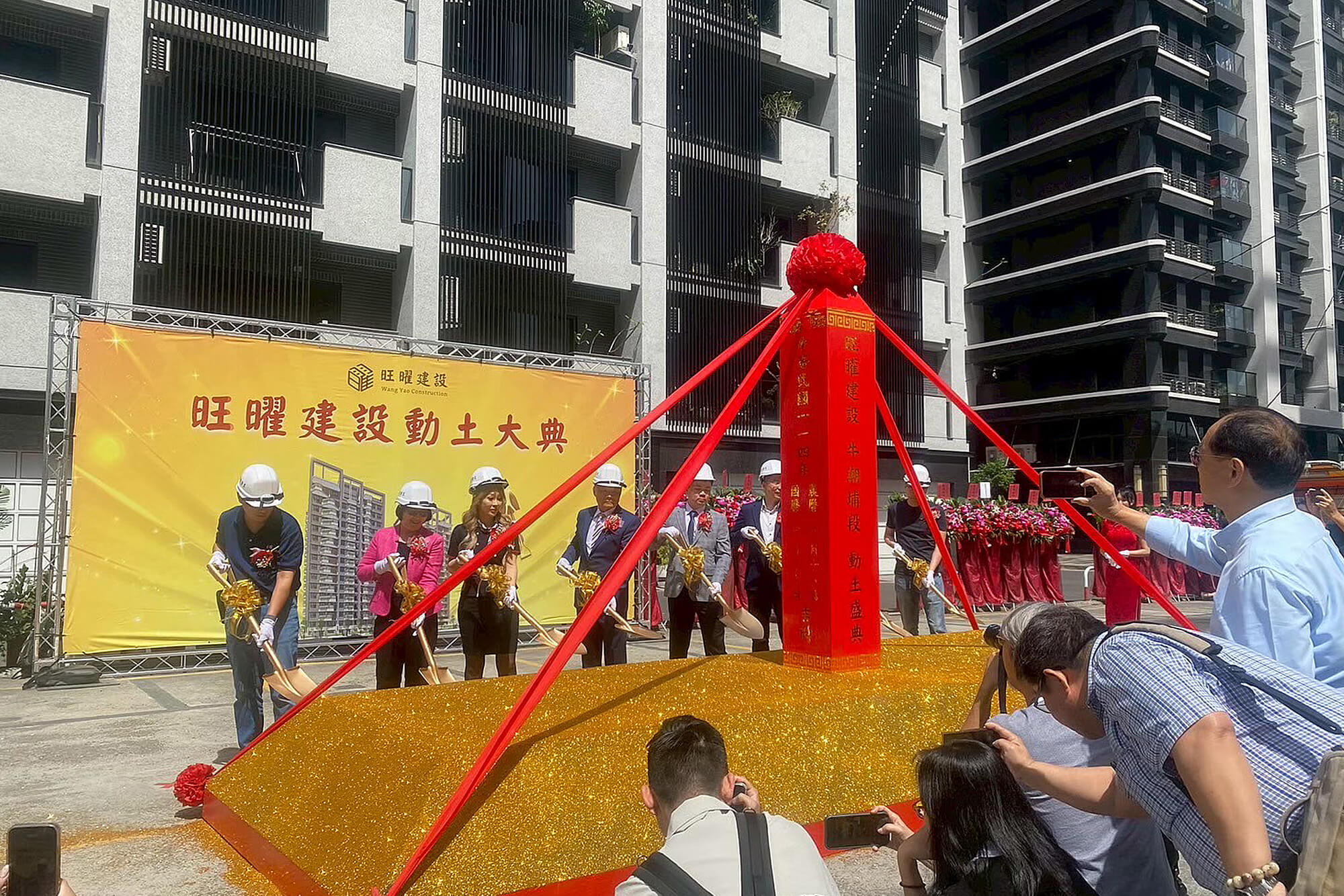 隨著禮炮聲響徹雲霄,象徵工程正式展開,旺曜建設新案啟動邁向新頁。現場嘉賓在鏟土合影中留下珍貴畫面,活動氛圍達到最高點。每一個環節皆由艾佛特活動整合行銷團隊親自監控執行,確保流程無誤、畫面完美。